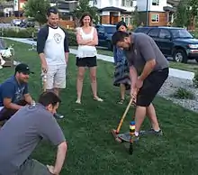 The Championship match was 6-wicket Oxford style, modified to squeeze into the backyard pitch of host Colin and Katherine Olson's West Kelowna home. Nickel jumped out to an early lead, but was surpassed midway through the course by Wile. The close quarters and out-of-bounds hazards kept players modest, and no lead seemed insurmountable. Though the competitors had an “Anybody-But-Brian” mentality going into the match, Martin was trailing behind when the unexpected occurred.