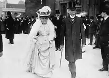 On June 22, 1897, Laurier attended the Diamond Jubilee of Queen Victoria, which was the 60th anniversary of her coronation. There, he was knighted, and was given several honours, honorary degrees, and medals.[1] Laurier again visited the United Kingdom in 1902, taking part in the 1902 Colonial Conference and the coronation of King Edward VII on 9 August 1902. Laurier also took part in the 1907 and 1911 Imperial Conferences.[32]