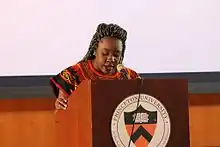 ![]() Wilglory Tanjong speaking at the Okwele Conference. | |