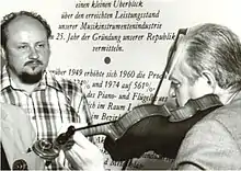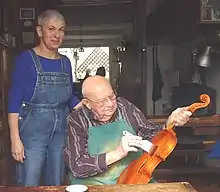 Wilhelm Brückner received the master craftsman's certificate in 1956. His masterpiece was a viola.[4] The viola building was then also the main focus of his further professional activity. In the following years he developed into an outstanding violin maker in the GDR and the Eastern Bloc.[5][6] In 1972 he won the gold medal[7] in Poland at the most prestigious and oldest violin making competition named after Henryk Wieniawski. In 1979 he was the first violin maker to be accepted into the Association of Visual Artists of the GDR,[8] which above all brought easier travel to the West. Despite political difficulties he was able to teach Swedish violin makers[9] and successfully take part in the international violin making competition "Antonius Stradivari" in Cremona in 1982 and in the "Louis Spohr violin making competition" in Kassel in 1983, where he was the most successful participant from the Eastern Bloc with six prizes.[10] In order to solve the serious problems of the still freelance violin makers in the GDR primarily with the procurement of materials, he initiated the establishment of the "specialist group of violin makers of the GDR" in 1978 and became its first deputy Chairman.[11] Together with Alfred Lipka, he had started early on to develop his own[12] viola model[5] (the so-called "wide-assed Brückner viola"),[3] which was relatively broad in the lower part and had a sonorous "black" sound, which was then often copied by colleagues[13] and was acquired by numerous internationally renowned soloists. Star conductor Kurt Masur affirmed in a letter in 2005: Wilhelm Brückner's instruments "were always so valuable that they could be compared with old Italians.[14]