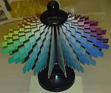 This representation of colors was an important early step toward their systematization, replacing color perception by the human eye with an objective system. Over time, Ostwald's advances in color science became part of the HSL and HSV color system.[29] Much of Ostwald's work on systematization of color was done in collaboration with Deutscher Werkbund, which was an association of painters and architects.[3]