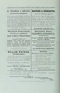 Wilhelm Schlüter was the proprietor of das Naturwissenschaftliche Institut - Naturalien und Lehrmittelhandlung in Halle an der Saale. He sold many important bird and insect collections to museums and private collections. He also supplied specimens, equipment and books to universities. He was associated with the ornithologists Otto Kleinschmidt, Oscar Rudolph Neumann and August Carl Eduard Baldamus and sold bird specimens collected by Herbert and Bruno Geisler in New Guinea, by Gustav Schrader in the Near East and by Carl Constantin Platen in China and South East Asia.