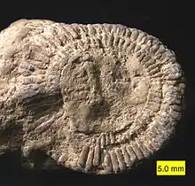 In the course of his long and active career he engaged in much palaeontological work: he studied the fauna of the Triassic and in 1861 introduced the term Rhaetic for the uppermost division of that system; he supported at first the view of the organic nature of Eozoon canadense (1866 and 1876), he devoted special attention to Foraminifera, and described those of the Eocene strata of the northern Alps (1868); he dealt also with Receptaculites (1875) which he regarded as a genus belonging to the Foraminifera. In 1875 and 1878 he published "Über die Beschaffenheit des Steinmeteoriten vom Fall am 12. Februar 1875 in der Grafschaft Iowa Nordamerika"[2] and "Über die in Bayern gefundenen Steinmeteoriten",[3] respectively, both important qualitative and quantitative essays on the physical properties of meteorites.