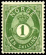 Stamp with horn motif in a series, launched in 1872, designed by von Hanno