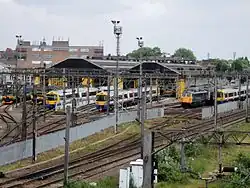 The LNWR opened a large locomotive depot on a site on the south side of the main line to the west of the station, in 1873. This was enlarged in 1898. The London Midland and Scottish Railway opened an additional roundhouse on the site in 1929. Both buildings were demolished when the depot was closed in 1965 by British Railways and replaced by a Freightliner depot.[52] (The servicing of locomotives and multiple units was then undertaken by the present Willesden TMD on the other side of the line.)