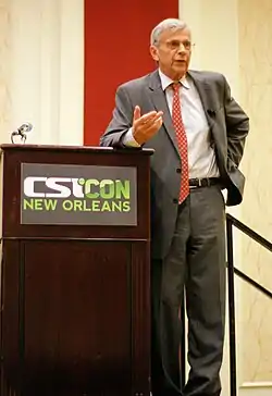 While on The X-Files, Davis was constantly challenged by fans of the show about his non-belief in the paranormal and aliens.[22] Davis credits Barry Beyerstein and the Committee for Skeptical Inquiry (CSI) for introducing him to the sceptic community. Davis became increasingly involved in the sceptic movement and began to give lectures as a sceptic spokesman at universities across North America and at sceptic conventions, including CSI's CSICon in New Orleans.[23]