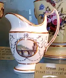 First he went to Pinxton, a small village in Derbyshire in October 1795 and superintended the erection of the Pinxton manufactory, with John Coke. He had become interested in improving the formula for soft-paste porcelain, apparently with the intention of exceeding the Sèvres soft-paste in beauty. In this he was swimming against the tide of the period; Spode's improved formula for bone china was taking over most English production, and Sèvres, at this point making both soft and hard-paste porcelain, was to drop the former by 1806.[6]