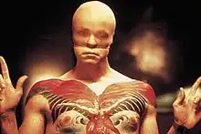 The film versions of the novel Red Dragon, Manhunter (1986) and Red Dragon (2002), include images of Blake's The Great Red Dragon and the Woman Clothed in Sun. In the first film the character played by Tom Noonan sports a tattoo on his chest based on Blake's image of the dragon hovering over the woman. The second film has the character (played by Ralph Fiennes) display a stylised version of the dragon tattooed on his back.[20]