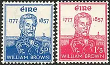 William Brown (also known in Spanish as Guillermo Brown or Almirante Brown) (22 June 1777 – 3 March 1857) was an Irish-born Argentine admiral. Brown's successes in the Argentine War of Independence, the Cisplatine War and the Anglo-French blockade of the Río de la Plata earned the respect and appreciation of the Argentine people, and he is regarded as one of Argentina's national heroes. Creator and first admiral of the country's maritime forces, he is commonly known as the "father of the Argentine Navy".[1][2][3][4]