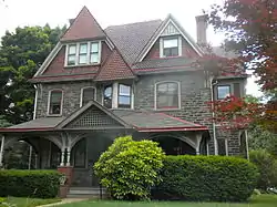 William C. Sharpless House is a historic home located in the Germantown neighborhood of Philadelphia, Pennsylvania. It was built about 1886, and is a three-story, Wissahickon schist, clapboard, and shingle dwelling in the Queen Anne-style. It features decorative quoining, gable, and hipped rooflines, and terra cotta decorative details. A two-story addition was built in the early 1900s. Also on the property is a contributing brick stable with stone quoining.[2]