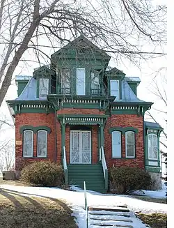 The William Clark House is a historic house at 320 Walnut Street in Baraboo, Wisconsin. The house was built between 1883 and 1886 for William Clark, an engineer for the Chicago and North Western Railroad. Clark built his house in a neighborhood near the railroad where many other railroad workers lived at the time; most of the other railroad workers' homes were small houses without formal designs, making Clark's house stand out compared to its neighbors. Local carpenter J. McVea gave the house a Second Empire design featuring an entrance pavilion with ornamental woodwork and a pedimented gable, segmental arched windows, and a mansard roof with a dentillated and bracketed cornice. Clark and his wife lived in the house until 1897.[2]