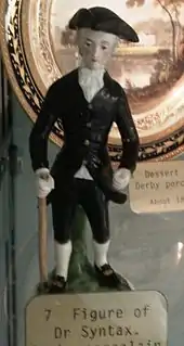 William Combe (25 March 1742 – 19 June 1823) was a British miscellaneous writer. His early life was that of an adventurer, his later was passed chiefly within the "rules" of the King's Bench Prison. He is chiefly remembered as the author of The Three Tours of Doctor Syntax, a comic poem, illustrated by artist Thomas Rowlandson's colour plates, that satirised William Gilpin. Combe also wrote a series of imaginary letters, supposed to have been written by the second, or "wicked" Lord Lyttelton. Of a similar kind were his letters between Swift and "Stella". He also wrote the letterpress for various illustrated books, and was a general hack.