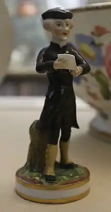 In 1790 and 91, the six volumes of a Devil on Two Sticks in England won for Combe the title of "the English le Sage". In 1794 he ghost-wrote the Aeneas Anderson memoir of the Lord Macartney embassy to Peking, "A Narrative of the British Embassy to China, in the Years 1792, 1793, and 1794". In 1794–1796 he wrote the text for Boydell's History of the River Thames, and in 1803 he began to write for The Times. From 1809 to 1811 he wrote for Ackermann's The Poetical Magazine the serialized comic poem The Tour of Dr Syntax in Search of the Picturesque, descriptive and moralizing verse illustrated by artist Thomas Rowlandson's color plates.[4] It satirised William Gilpin, who toured Britain to describe his theory of the Picturesque.[5] It was collected in book form in 1812, and was followed by two similar Tours, "...in search of Consolation" (1819) and "...in search of a Wife,"[4] the first Mrs Syntax having died at the end of the first Tour.[2] The second Tour was collected as an 1820 book, and the third tour as an 1821 book. Some reprint editions over the next several decades rendered Rowlandson's color plates in black and white.[4]