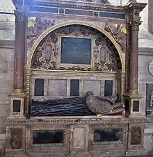 He died on 6 August 1621 and was buried in Exeter Cathedral where his fine monument with recumbent effigy survives.