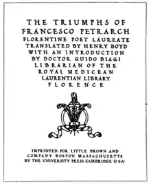 - "Collection concerning the publication of The triumphs of Francesco Petrarch ..., 1903-1941". OCLC. Retrieved 17 February 2013.