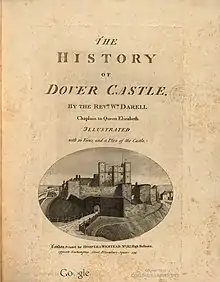 On both 23 September 1553 and 24 March 1554, Darell was assigned to take over the third prebend of Canterbury Cathedral, Kent from the previous incumbent Robert Goldeston.[2] Darell also attended Oxford University, where he graduated BA on 24 April 1554 and MA on 29 May 1554.[3] At Canterbury, Darell was among five-person chapter who elected Matthew Parker to the Archbishopric of Canterbury. He was tasked with announcing the chapter's decision and presenting it to Parker for his approval. Darell thereafter advanced through the ranks of the Cathedral, becoming subdean in 1560. Under Archbishop Parker, Darell was among those encouraged in antiquarianism. He authored a work on the castles of Kent, entitled Castra in campo Cantiano ab antiquo aedita nobilium ope et diligentia, dedicated to his patron, William Brooke, 10th Baron Cobham, lord of the Manor of Cobham, Kent and Lord Warden of the Cinque Ports. Darell was also a diligent collector of manuscripts. Among his collection was a copy of the Flores Historiarum, a Latin chronicle of English history, with 14th-century additions, formerly in the collection of John Bale; a 15th-century copy of the medieval Brut Chronicle; and a 15th-century collection on the heraldry of the Irish nobility.[2]