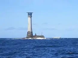 James Douglass, the brother of William, was at that time engaged in building the 135-foot-tall (41 m) Wolf Rock Lighthouse off Land's End when James Walker died, and James was appointed as the new engineer-in-chief to Trinity House. William was called in to continue the work near the Isles of Scilly.[1]: ch4 Continuing his system of being the first to land, the last to leave and ensuring safety lines were fastened to each man William, who was a strong swimmer, worked on the lighthouse, on one occasion risking his life to steer a boat in storm seas close to the partly-built lighthouse so that supplies could be delivered to the men stranded on the rock.[1]: ch5 Completed on 19 July 1869,[3] the light was first lit in January 1870.