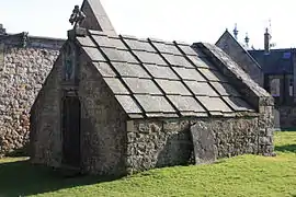 He died on 4 December 1649.[7] He was buried in a stone vault in his parish church of Lasswade.[7] His tomb was restored in 1892 and a bronze relief added over the entrance.[10]