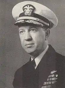 After his promotion to LTJG, he was ordered to the USS O-9 (SS-70) as the submarine's Executive Officer until her decommissioning on June 25, 1931. His next assignment was at the United States Naval Academy, where he was an English and History instructor.[5] While there, he received a Letter of Commendation from the Commandant of the academy for the many hours he volunteered to the academy's athletic department as a football and boxing coach. After his tour of duty at the academy, he was assigned to the USS Saratoga (CV-3) as the carrier's boiler division officer, ship's secretary to the Captain, and other duties. While serving on Saratoga, he was promoted to the rank of lieutenant on March 13, 1934.[6] He received a Letter of Commendation later that year from Commander Aircraft Battle Forces Atlantic Fleet for navigating the Saratoga through the Straits of Florida at high speeds in heavy weather and darkened ship conditions during Fleet exercises.[7] He remained on Saratoga for another 2 years until he was ordered to the Hydrographers Office in Baltimore, Maryland, on April 8, 1936, as the Commanding Officer of that office.[8] He served as Commanding Officer there until March 5, 1938, when he was sent to the USS Mississippi (BB-41),[9] where he served as the ships 1st Lieutenant and damage control officer.