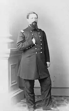 William E. Woodruff was an American soldier who served as colonel of the 25th Illinois Volunteer Infantry Regiment during the American Civil War. Woodruff was given temporary brigade and division command in the Army of the Cumberland, but not promoted to brigadier general. He resigned in January 1863 out of frustration for his lack of advancement and was replaced by Brig. Gen. Thomas T. Crittenden.[1]
