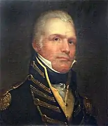 William Eaton (23 February 1764[1] – 1 June 1811[2]) was a United States Army officer and the diplomatic officer Consul General to Tunis (1797–1803). He played an important diplomatic and military role in the First Barbary War between the United States and Tripoli (1801–1805). He led the first foreign United States military victory at the Battle of Derne by capturing the Tripoli subject city of Derne in support of the restoration of the pasha (local monarch), Hamet Caramelli.[3] William Eaton also gave testimony at the treason trial of former Vice President Aaron Burr.[4] He served one term in the General Court of Massachusetts (state legislature). Eaton died on June 1, 1811, at the age of forty-seven.