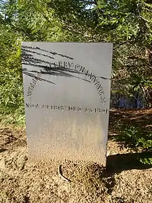 Channing died December 23, 1901 in Concord, at the home of Franklin Benjamin Sanborn, where he had spent the final ten years of his life. He is buried at Sleepy Hollow Cemetery, Concord on Authors' Ridge directly facing his longtime friend Thoreau. Frank Sanborn paid for Channing's burial plot.[7]