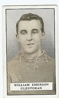 After being snapped up by the Glens in 1912, he made five appearances, scoring three goals in wins against Derry City and Shelbourne. Glentoran finished as champions that season and the following year, Emerson was part of the successful team that lifted both the Irish Cup and City Cup. He was also part of the squad that traveled to the continent and brought back the Vienna Cup.[3] William Emerson made almost 300 appearances for Glentoran before joining Burnley during the 1921–22 season.