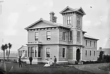 Fox bought 5,000 acres (2,000 ha)[9] of the controversially[10] acquired Rangitīkei block, near Greatford, about 1849.[9] In 1868 an attempt to subdivide a township of Marsden[11] failed because of a liquor ban. The current Westoe was designed by Charles Tringham and built for Fox in 1874 in Italianate style. It was sold in 1885 and was listed as a Category 1 Historic Place on 29 November 1985.[9] The gardens include a cedar of Lebanon planted by Fox.[12]