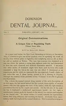 Beers was a successful and notable dentist. After finishing his schooling in 1856, Beers completed a dental apprenticeship. By the early 1860s, Beers was a successful dentist and began publishing article in journals.[1] In 1868, he founded Canada's first dental journal, the Canada Journal of Dental Science.[2] Although this publication failed, he went on to start the Dominion Dental Journal in 1889, which eventually became the modern day Journal of the Canadian Dental Association. He was instrumental in the founding of Quebec's first dental college – the Dental College of the Province of Quebec, founded in 1892 and served as its founding dean.[3] In 1896, this College became affiliated with Bishop's University and later became the McGill University Faculty of Dentistry. He held the position of Dean at Bishop's for only a short time; differences in opinion regarding curriculum and concerns over the use of untrained dental assistants led Beers to resign from the position.[4]