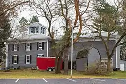 The William H. Brown House is a two-story frame Italianate structure with clapboard siding with a low-pitched hipped roof. The eaves widely overhang the walls, and the corners of the house have pilasters. A porch has been added to the side of the house.[2]