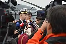 In his roles as Public Affairs Officer for the Defence Intelligence Agency and Chief of Media for the U.S. Navy, Marks has frequently appeared in the press and other media explaining U.S. policies as they changed as a result of the "War on Terror". He has been the spokesman for military policy in a number of important areas including the largest search in history, the Search for Malaysia Airlines Flight 370.[2] At the height of the media interest in the plane search, Marks and his 7 sub-ordinates gave 26 interviews and answered 200 email requests for information during a 24 hour period.[2] Eventually his team gave 182 live interviews over a 30-day period before the search was concluded.[3] While serving at the Pentagon he was lead spokesperson for environmental, medical and legal issues.