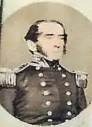 In January 1852, McCluney was ordered to Philadelphia Navy Yard to prepare the USS Mississippi as flagship for Commodore Perry's planned expedition to Japan.[31] The newly refitted steam frigate Mississippi was recommissioned under McCluney's command 11 May 1852.[32] Perry raised his flag aboard the Mississippi upon McCluney's arrival in New York.[33] The vessel was diverted, however, from preparation for Japan to resolution of a diplomatic dispute off Nova Scotia. At the request of Secretary of State Daniel Webster, President Millard Fillmore ordered the Mississippi to intervene between British-Canadian and American commercial fisherman. The diversion served as a training opportunity for commodore, captain, and crew.[34]