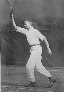 William J. Clothier was a top American tennis player in the early 1900s and reached the singles final of the United States Championships three times. In his first final appearance in 1904 he lost in three straight sets to compatriot Holcombe Ward. Two years later, in 1906, Clothier achieved his greatest success by emphatically beating Beals Wright in the final in three straight sets at the Newport Casino. This despite breaking his pelvic bone in a riding accident earlier that year.[2] His last appearance in the final came in 1909 when he lost in five sets to William Larned who claimed his fifth singles title.[3]