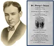 William Lee Popham began speaking on the Chautauqua circuit in 1902 and began publishing books of advice, sermons, poetry and romance novels in 1905. The Library of Congress lists twenty of his published titles.[2] During his Chautauqua tours, Popham hit upon the idea of writing travel romance novels, each with the same plot in a different location. He called the series Seven Wonders of the World romances. These became significant when Popham used them as equity to purchase St. George Island (Florida), in 1916.[3] A typical example of the "Seven Wonders" series is Mammoth Cave Romance. The book begins with photographs of Mammoth Cave and then segues into a brief, melodramatic plot in which young Franklin Lenton wins consent to marry the vivacious beauty, Violet Thurmon over initial objections of her father. Excellent examples of Popham's poetry, sermons and advice are found in "Silver Gems in Seas of Gold."