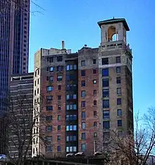 - Winecoff Hotel, Atlanta (1913): This 15-story building at 176 Peachtree Street NW was renamed the Peachtree on Peachtree Hotel in 1951, and after being empty for many years, it re-opened as the Ellis Hotel in 2007. In 1946, the hotel had suffered a disastrous fire, killing 119 people. Of the 119 deaths, 36 died from falling or jumping.[10][11][12] The hotel lacked fire escapes, and the sole staircase had no fire doors, which allowed the fire to spread rapidly from floor to floor.