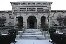 William Elkins died at his summer home, at age seventy-one on November 7, 1903, in Elkins Park, Pennsylvania. He was interred at Laurel Hill Cemetery in Philadelphia.[1] He left behind an estate valued at $25 million.[11] Among his philanthropic gifts, William Elkins left $240,000 to the Masonic Home for Girls in Philadelphia. He bequeathed his art collection to the city to be given following the death of his last heir.[16]