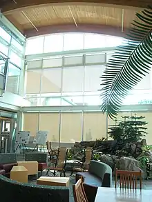 Other corporate projects include buildings for Gap Inc., Nike, and Herman Miller.[34][6] The Herman Miller SQA factory in Michigan includes a series of manmade wetlands that process and purify the building’s stormwater.[6] Set on 37 acres (15 ha), the 295,000 square feet (27,400 m2) building is often called the GreenHouse.[35]