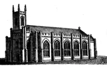 Morgan was admitted as a sizar at Emmanuel College, Cambridge in 1813. He was awarded the B.D. degree as a ten-year man in 1823, from Queens' College, Cambridge.[11] He appointed curate at St Peter's, Bradford in 1815 to Crosse, who died the following year.[12] He was then perpetual curate of Christ Church, Bradford from 1815 to 1851, taking up the post as the first incumbent in what was a new church.[11][13] It was to a design by Thomas Taylor and was built on a plot of land given in 1813, by a member of the local Rawson family.[14] Some of the finance was anonymous, from a female donor, via George Gaskin as intermediary. The church plan was large, seating 1300, and was noted for the 400 seats free of pew rents originally provided (later rising).[15] The church was pulled down in 1878.[14]