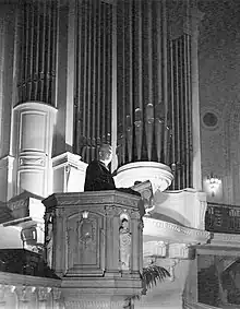 He oversaw the enlargement of the Academy Chapel, referred to as the “Cathedral of the Navy.” The nave was extended by a thousand seats converting the design of the chapel from a Greek to a Latin cross with 2500 seats. He replaced the cannons with anchors on the chapel entrance believing "that religion should be the anchor of a naval officer's life".[11] A new pulpit was created and a votive ship installed. The completed Chapel was re-dedicated on April 28, 1940, with Thomas presiding.[12] He was instrumental in bringing the Jewish clergy to the Academy.[13]