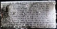"Heer lieth the body of Katherin daughter of Alexander Popham of Huntworthi in the counti of Somerset Esquir., the sister of Sir John Popham, knight, Lo. Chief Justice of England, lately the wief of William Pole Esquier the Elder unto whom shee brought foorth William Pole, knight, and Dorothe the wife first of Thomas Erle Esquier, secondly of Walter Vaughan, knight, which were liveing and Alexander, Hugh, Richard, Arthur and Amy which died younge. She died the 28 of October 1588 unto the memori of whome Sr. Wm. Pole Knig. her son hath set this monument".