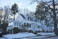 The William Prentiss House is a historic Greek Revival style house in Arlington, Massachusetts. Built c. 1860, it is one of the oldest houses in the Arlington Heights neighborhood of the town. It is 2 and a half stories in height, with a side gable roof that has a large shed-roof dormer. A 20th-century porch extends to the left side, and the centered entrance is sheltered by a modern glassy shallow vestibule. Stylistically, the house resembles a number of houses built in East Arlington around the same time, but is the only one of its type in this neighborhood. William Prentiss, a local farmer, was its first known owner.[2] The house was listed on the National Register of Historic Places in 1985.[1]