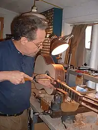 ![]() William Cumpiano working on a classical guitar | |