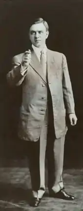 In 1907, Sadler began giving lectures on the Chautauqua adult-education circuit, which featured itinerant speakers discussing self-help and morality. Sadler often spoke about attaining physical and mental health without drugs. He also promoted hydrotherapy and discussed moral issues that related to men.[43] Sadler, his wife, her sister, and a friend, formed a four-member lecture company that gave two- or three-day engagements, sometimes accompanied by an orchestra. Newspapers published favorable reviews of the productions.[44] The lectures proved to be a lucrative endeavor: it was rumored that he became one of the best-paid Chautauqua speakers.[24]