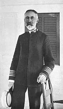 He was born in Palmyra, New York, and entered the United States Naval Academy on September 24, 1857. After graduating first in his class four years later, he served as an instructor at the Academy, teaching physics.[1] In 1864, he became the executive officer of the monitor Patapsco of the South Atlantic Blockading Squadron and engaged in sweeping torpedoes off Charleston, South Carolina. He survived the loss of that ironclad on January 15, 1865, when she struck a torpedo, exploded, and sank with a loss of 75 lives.