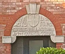- Monk's Road Primary School, Lincoln. 1903/4 and later extended. A similar datestone to the Spring Hill School is above the gable window on this school.[41]
