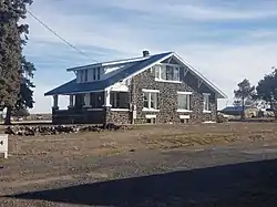 It is a one-and-a-half-story bungalow-style house with an approximately 44 by 33 feet (13 m × 10 m) plan. It has wide eaves with exposed rafters, and a centered tall stone chimney.[2] It includes a water tank.