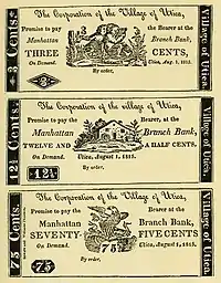 Williams also printed, in 1832, an edition of the New Testament; Walter King's Questions on the Gospel Harmony; Proceedings of thee Synod of Dort. Williams wanted to do more with his career than just being a bookseller, printer, and newspaper proprietor, and subsequently learned the art of engraving. In this capacity, he performed work for the firm of Balch and Stiles, who printed maps of New York and bank notes for the city and Bank of Utica and some western banks.[38] Williams also established a newspaper called The Farmers' Calendar that featured advice for farming in New York for each year of the month. He had announced that the word NEWS was derived from the four cardinal points of the compass marked with the letters N, E, W, and S.[39]