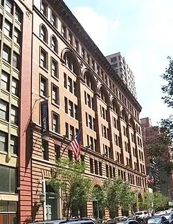 On September 10, 1986, the nearby Baruch College announced a $252 million plan for a new campus between Lexington Avenue and 3rd Avenue, from 24th to 26th Streets.[24] The plans were developed along with the Davis, Brody and Associates architectural firm.[2][25] The new campus would include the Lexington Building (referred to as "Site A"),[26] which had been identified as a potential state or national landmark. The school planned to renovate the building for use as a library, computer center, and for offices and student groups, at the cost of $50 million. The renovations would be made within New York State historic preservation guidelines.[24][25]: 49−50 The plan was controversial because of the building's historical status, as well as opposition from existing tenants in the building (including a carpentry school) who would have to relocate. In addition, since the building owners opposed sale of the building, the New York State Dormitory Authority planned to acquire the building via eminent domain.[27] The renovations by Davis, Brody and Associates were completed in 1994, costing $153.5 million.[2][26] The Newman Library was dedicated on May 19, 1994.[28]
