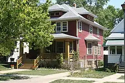 The William and Caroline Gibbs House is a historic house at 515 N. 3rd Avenue in Maywood, Illinois. The American Foursquare house was built in 1907. The house has a standard Foursquare layout with a square shape, a pyramidal roof with dormers, and a front porch. In keeping with its style, its interior has a functional layout with a central staircase, an easily accessible kitchen, and built-in furniture. As was common in Foursquare homes, the house has simple geometric detailing inspired by the Craftsman movement, such as wood trim, leadlight windows, and square columns.[2]