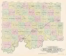 Williams County is located on the western border of the U.S. state of North Dakota, next to Montana. As of the 2020 census, the population was 40,950.[1] making it the fifth-most populous county in North Dakota. Its county seat is Williston.[2]
